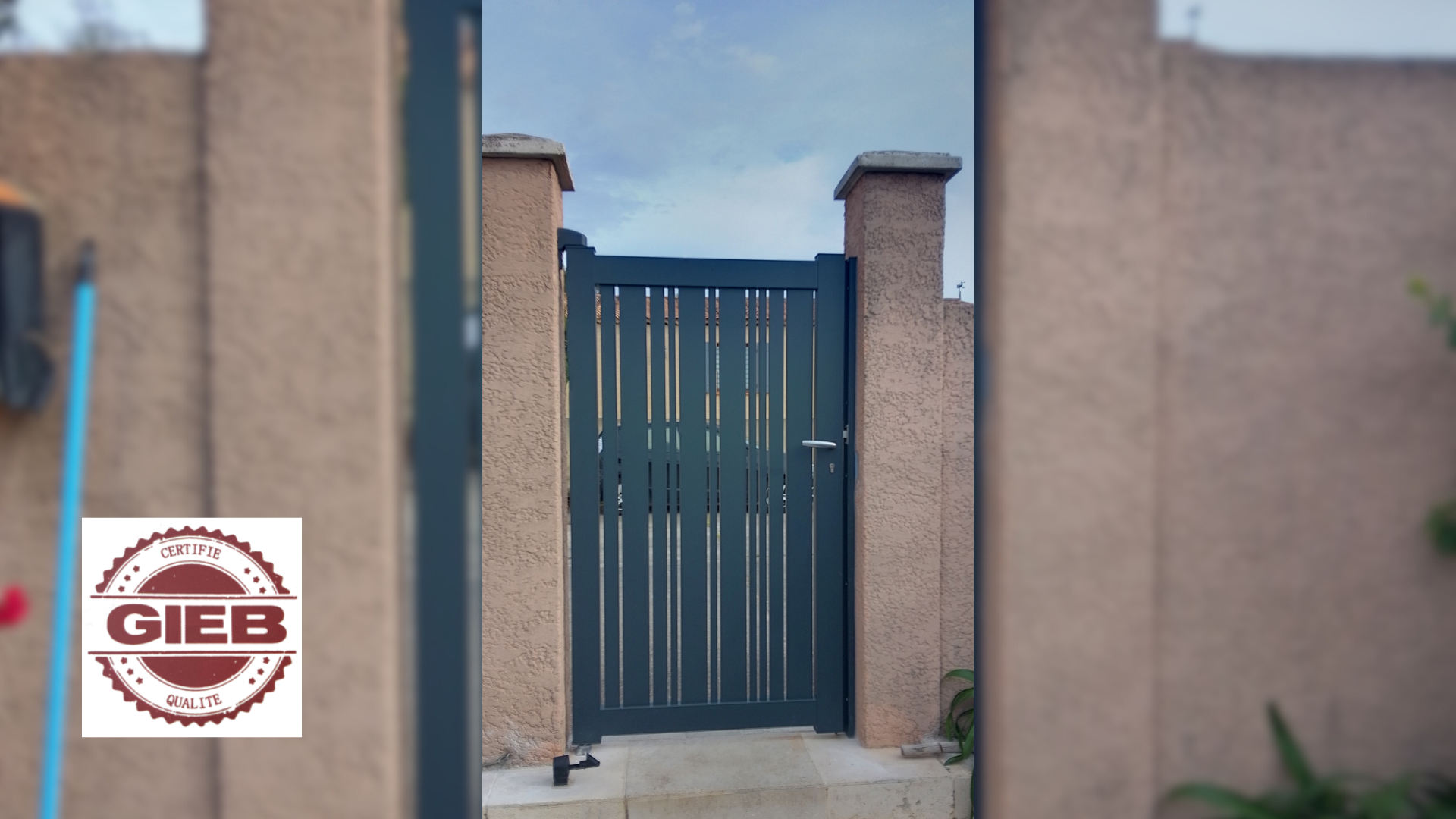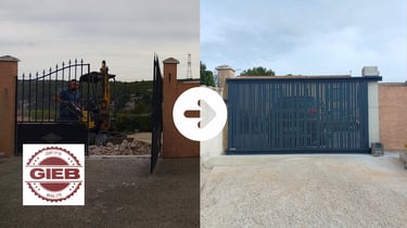 Le G.I.E.B a ensuite procédé à la création d’un chemin en dalle béton, conçu pour être à la fois solide, technique et durable, capable de résister aux contraintes du temps et de l’usage. Une fois les supports parfaitement préparés, un portail et un portillon modernes en aluminium ont été installés, apportant une touche contemporaine et élégante à l’ensemble. Chaque étape a été réalisée avec précision et sous un suivi de chantier rigoureux.